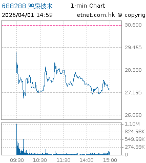 | 688288 | 鸿泉技术 | 27.320 | -3.280 | -10.719% | 3.39亿 | -- | ||