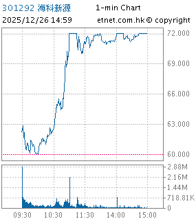 | 301292 | 海科新源 | 72.000 | +12.000 | +20.000% | 27.52亿 | -- | 深股通 # | |