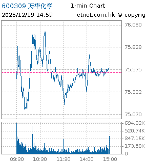 | 600309 | 万华化学 | 75.590 | +0.050 | +0.066% | 18.37亿 | 18.2145 | 沪股通 | |